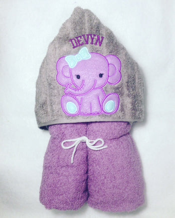 This is a full size bath towel, measuring 32"x54", with an added embroidered hood featuring a baby girl elephant . Great for kids of all ages! Fun for bath time, poolside, or beach! Awesome birthday or baby shower gift and even pool party favors!