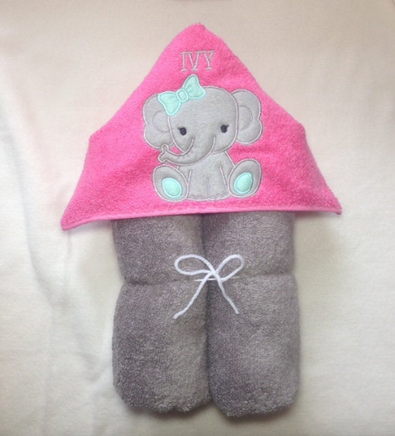 This is a full size bath towel, measuring 32"x54", with an added embroidered hood featuring an elephant. Great for kids of all ages! Fun for bath time, poolside, or beach! Awesome birthday or baby shower gift and even pool party favors!