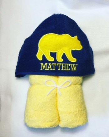 This is a full size bath towel, measuring 32"x54", with an added embroidered hood featuring a bear. Great for kids of all ages! Fun for bath time, poolside, or beach! Awesome birthday or baby shower gift and even pool party favors!